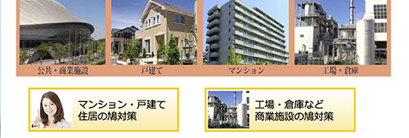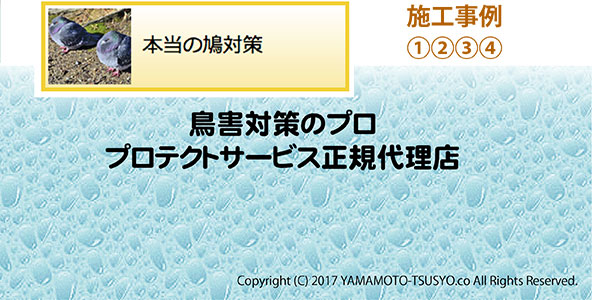 ハト害対策・マンション・戸建て ハト害対策・工場・倉庫 施工事例1へ施工事例4へ施工事例3へ施工事例2へ 本当の鳩対策 施工事例1へ